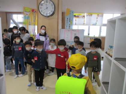 水曜日は、玄関内(児童ギャラリー前)であいさつをします。