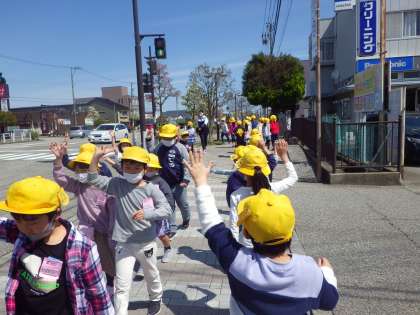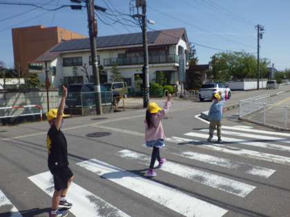 車や自転車に気を付けながら、安全な歩き方を確認しました。