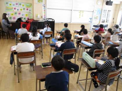 ♪「友だちのうた」を歌った後、2種類のピアノ伴奏の「違い」を聴き分けました・・・