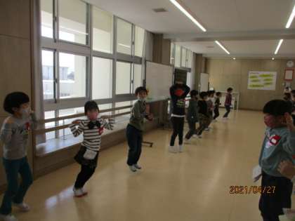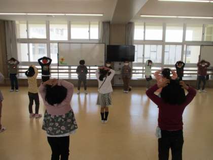 今日は「チェチェッコリ」という曲に合わせて身体を動かしました。