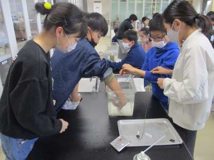 物の燃え方の学習で、ものが燃えるには「酸素」「二酸化炭素」「窒素」のどれが必要になるのか調べています。