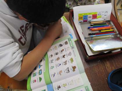 ジェームズ先生に自分のことを紹介できるように自己紹介カードを作成し、英語での言い方を練習しました。