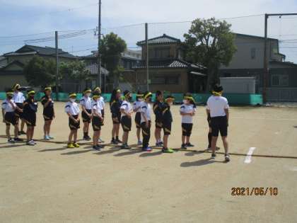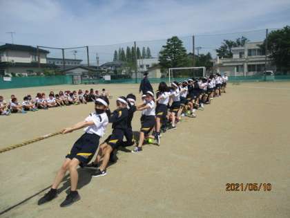 6年生と一緒に動きや綱の引き方などを確認しました。