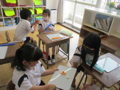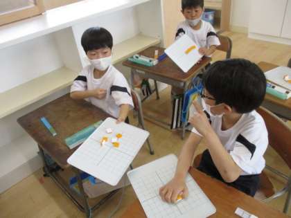 算数の学習では、「7」がいくつといくつに分かれるか考えました。