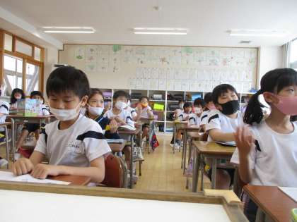 「How are you?」の歌を歌っています(3年生)