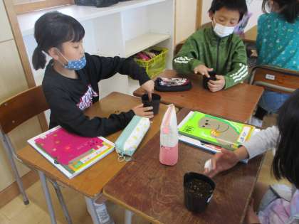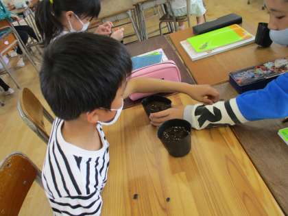 ヘチマの種を植えたよ(4年生)