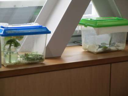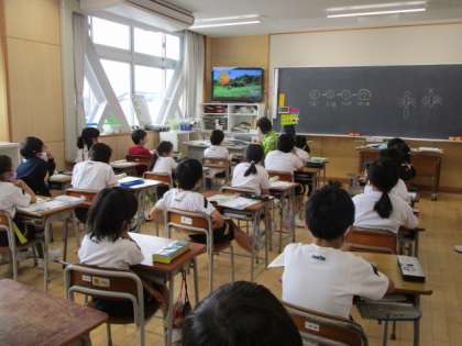 動画で教科書の内容を復習します。教室でもチョウを育てています。