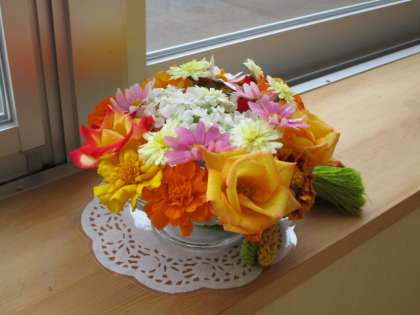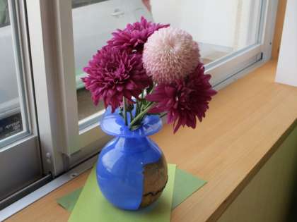 至る所に花が飾られ、明るい校内です。