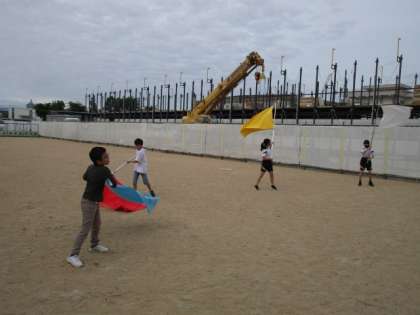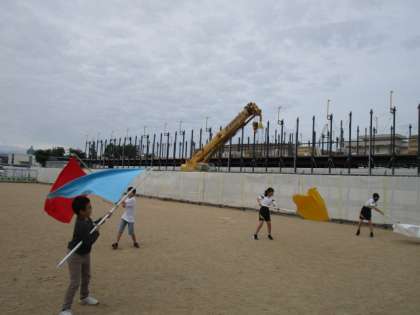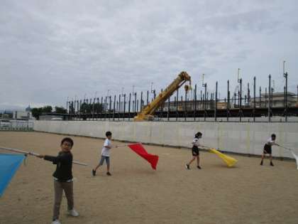 色団の団旗を振る練習をしていました。