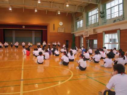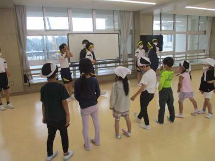 先週教えた応援の練習や競技のこつなどを再度行いました。