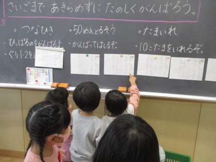 宿題プリントをとても丁寧に取り組んでいたお友達を紹介し、プリントを黒板に掲示しました。