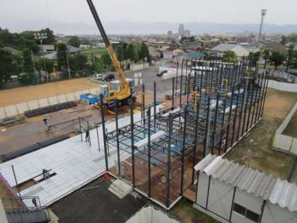 6月上旬には解体作業が終了し、引き続きグラウンド復旧工事及び外構工事が始まる予定です・・・