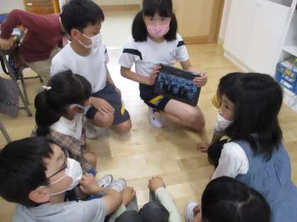 今日のわくわくタイムに、6年生さんからプレゼントをもらいました。