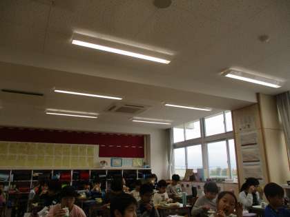 給食の時間の放送で、団長からの応援メッセージがありました。
