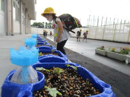「アサガオの芽が出たあ〜」