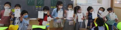 50m走で1位をとった子に賞状を渡しました。
