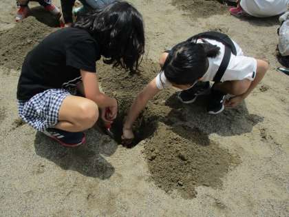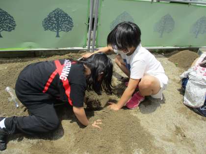 子供たちは砂場でやってみたところ、最大50cmまで掘り進めました。