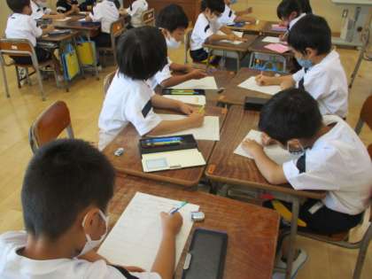 学校探検で行く場所、一緒に行くメンバー、何を見るかを考えました。