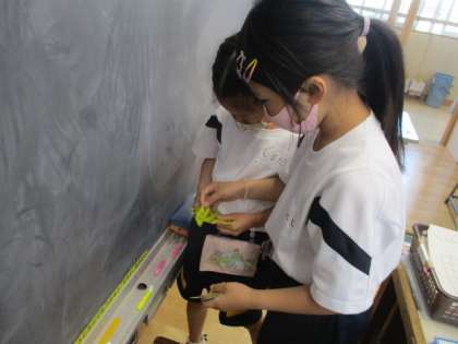 授業中に使うネームプレートを、進んで番号順に並べています。