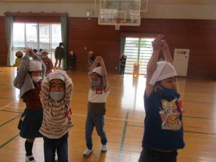体育館でバナナおにをして遊びました。