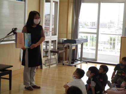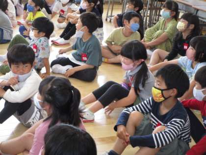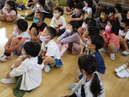 ボランティアの方が、今年初めて来校されました。お話の世界にどんどん引き込まれる子供たちです。