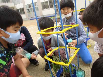トマトの実があと何日で赤くなるかな?と予想しながら毎日水やりに励んでいます。