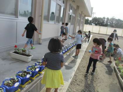 みんなの「水やり」のおかげで、アサガオは元気いっぱいです!