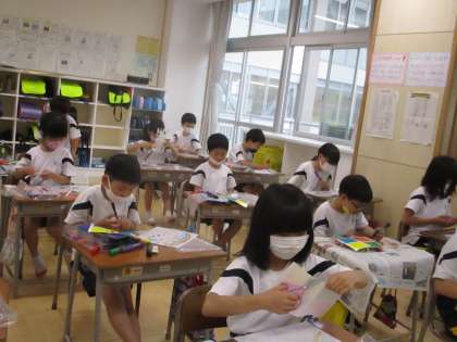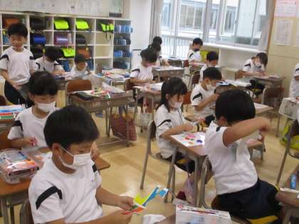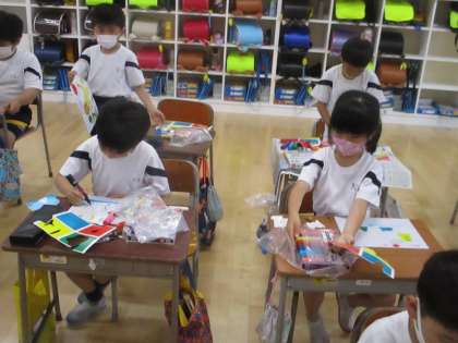 今日は、太陽にかざすときらきら光る、ひかりのプレゼント作りを行いました。