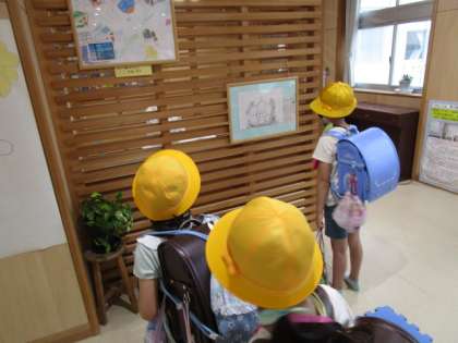 展示作品にくぎづけ(4年生)