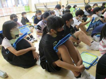 今日は、校外学習の内容や約束を聞き、目当てを班で考えました。