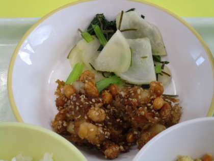 ・ごはん ・牛乳 ・大豆とホタテのごまからめ