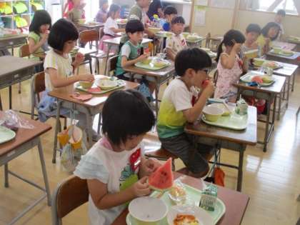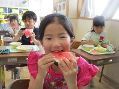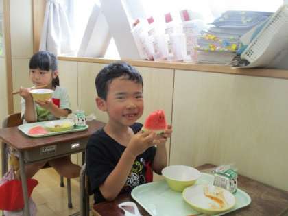 「早くもスイカが給食のメニューに入るなんて!」
