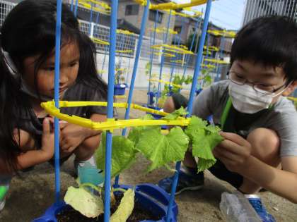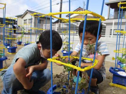 野菜の水やり(2年生)