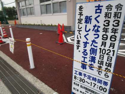 21日(月)頃より、校舎北側道路の側溝工事が始まるとのことです。