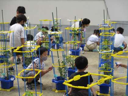 今日は、ピーマンを収穫できた人がいました!毎日水やりを頑張った成果ですね。