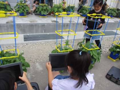 生活 ぐんぐん伸びるつるを記録に残すよ。(1年生)