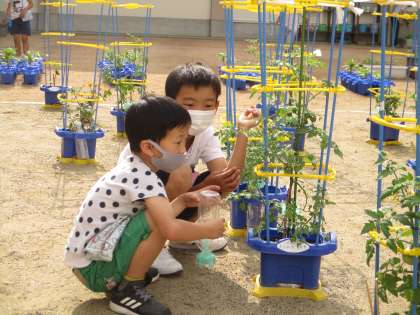 野菜の水やり(2年生)