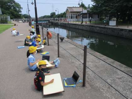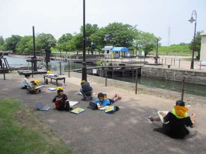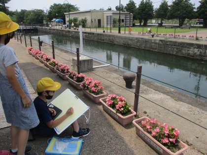 中島閘門に行って、写生をしました。