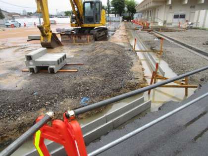 撮影方向:北→南(左側がグラウンド、右側が児童玄関)