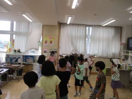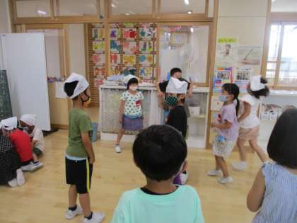 「双六」ができない間、「だるまさんが転んだ」をして楽しんでもらおうというアイデアです。