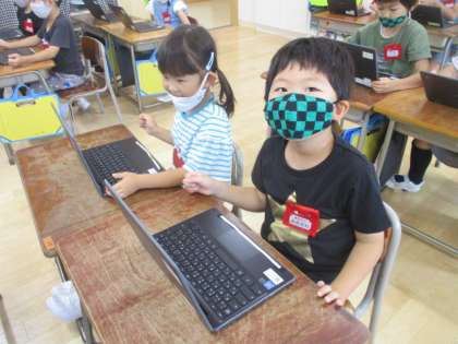 クロムブックでアンケートとクイズを解いたよ。(1年生) 公開日 2021/07/06 更新日 2021/07/06 1年生 「学校評価アンケート」と「えいようクイズ王」をしました。 初めての学習でも、ペアの友達と協力して取り組めました。