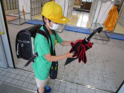 学校到着後、言われなくても傘を縛っている(巻いている)子が少なからずいました・・・