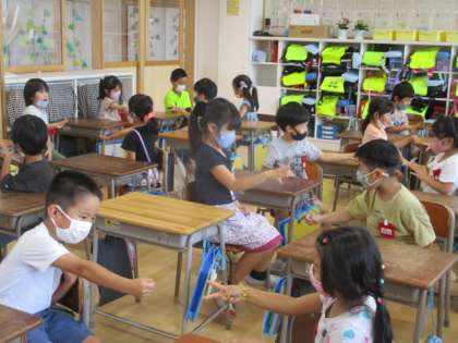 「あいさつじゃんけん」では、あいこになったときに、どちらが先に「おはようございます」を言えるのかを競いました。