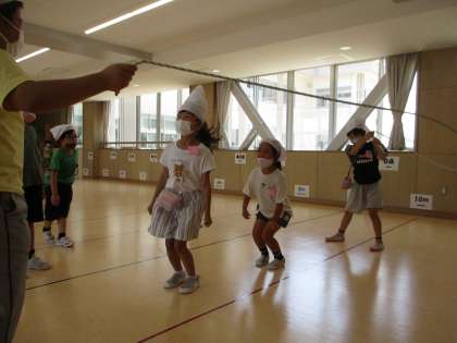 大縄跳びをしたり、ピアノを弾いたりしています。