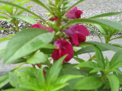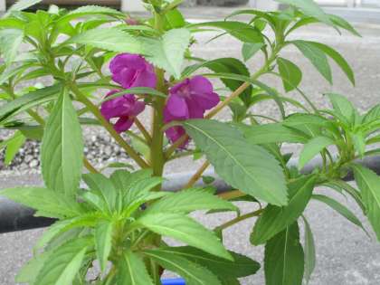 いろいろな色のホウセンカの花が咲いています。
