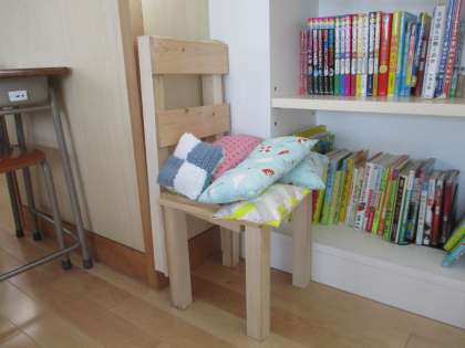 「いす」には、裁縫係が作ったクッションが置かれ、学級のみんなの憩いの場になりました。