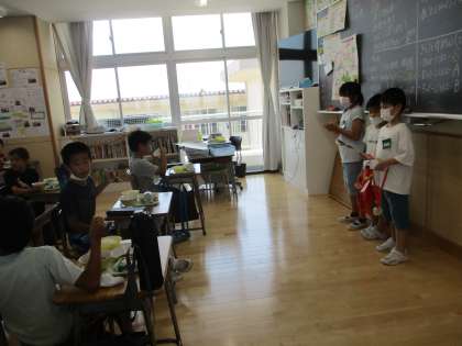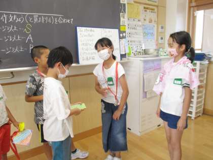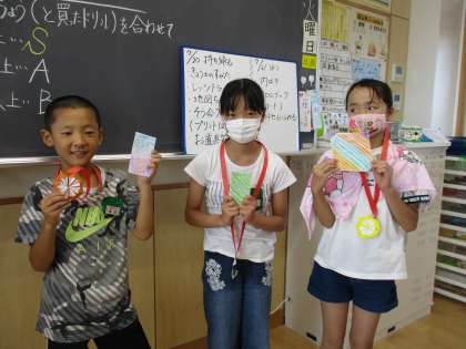 出版係さんが、1学期図書室をたくさん利用した友達にメダルと賞状をわたしました。