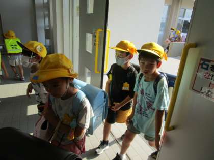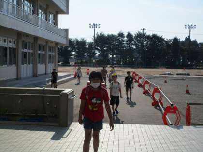 今日は終業式。奥田北っ子の元気な挨拶が響きました。