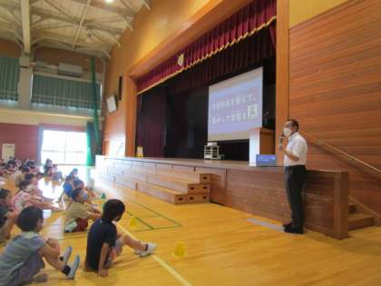 生徒指導の先生から、「交通安全」や「公園での遊び方やマナー」など、1学期の生活を振り返りながら、夏休みに気を付けてほしいことのお話がありました。お子さんからぜひ話を聞いてください。