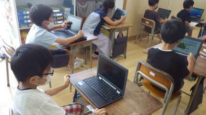 計算カードのタイムが縮むようにがんばりましょう。クロムブックを使ったアサガオの観察や夏らしい写真の撮影にも取り組みましょうね。